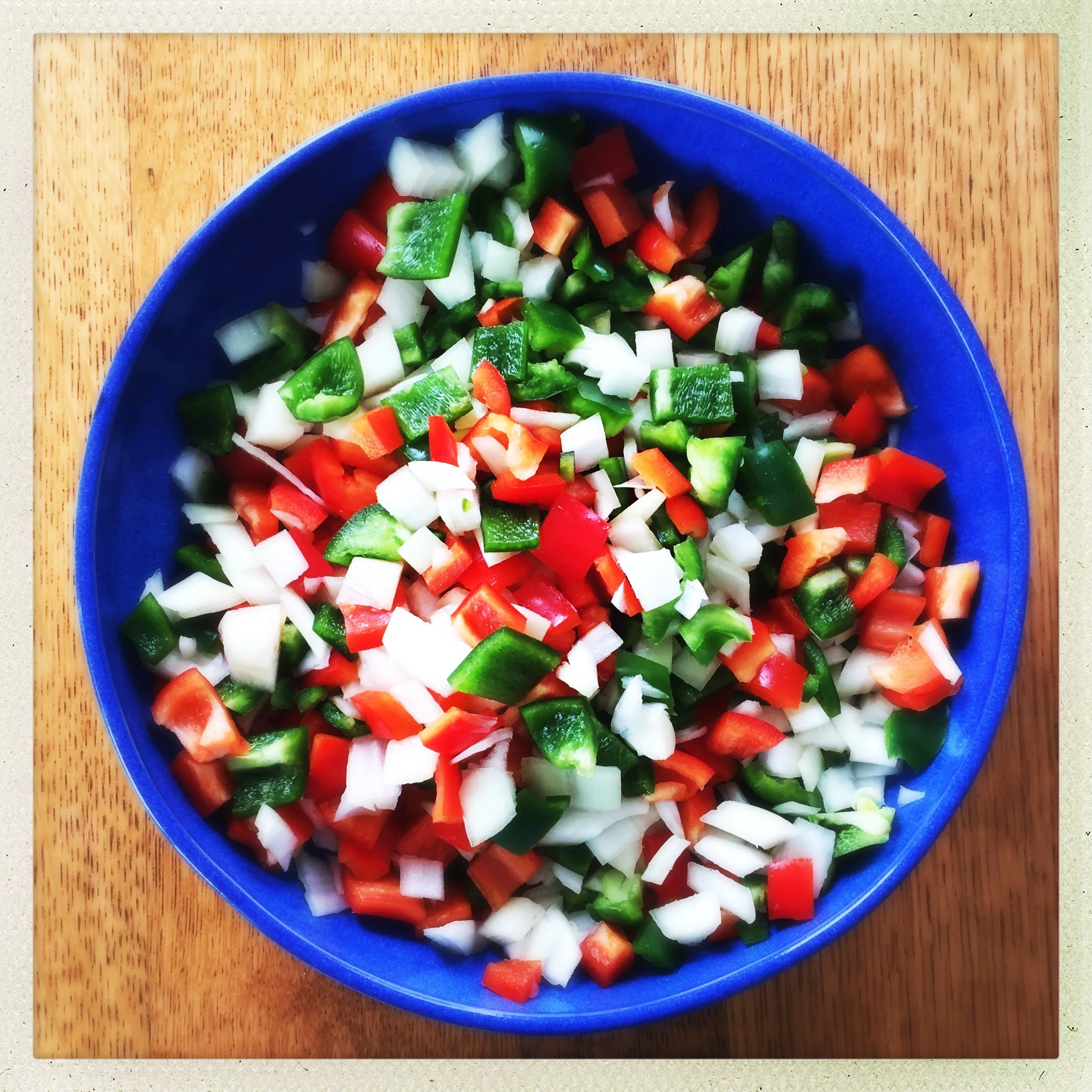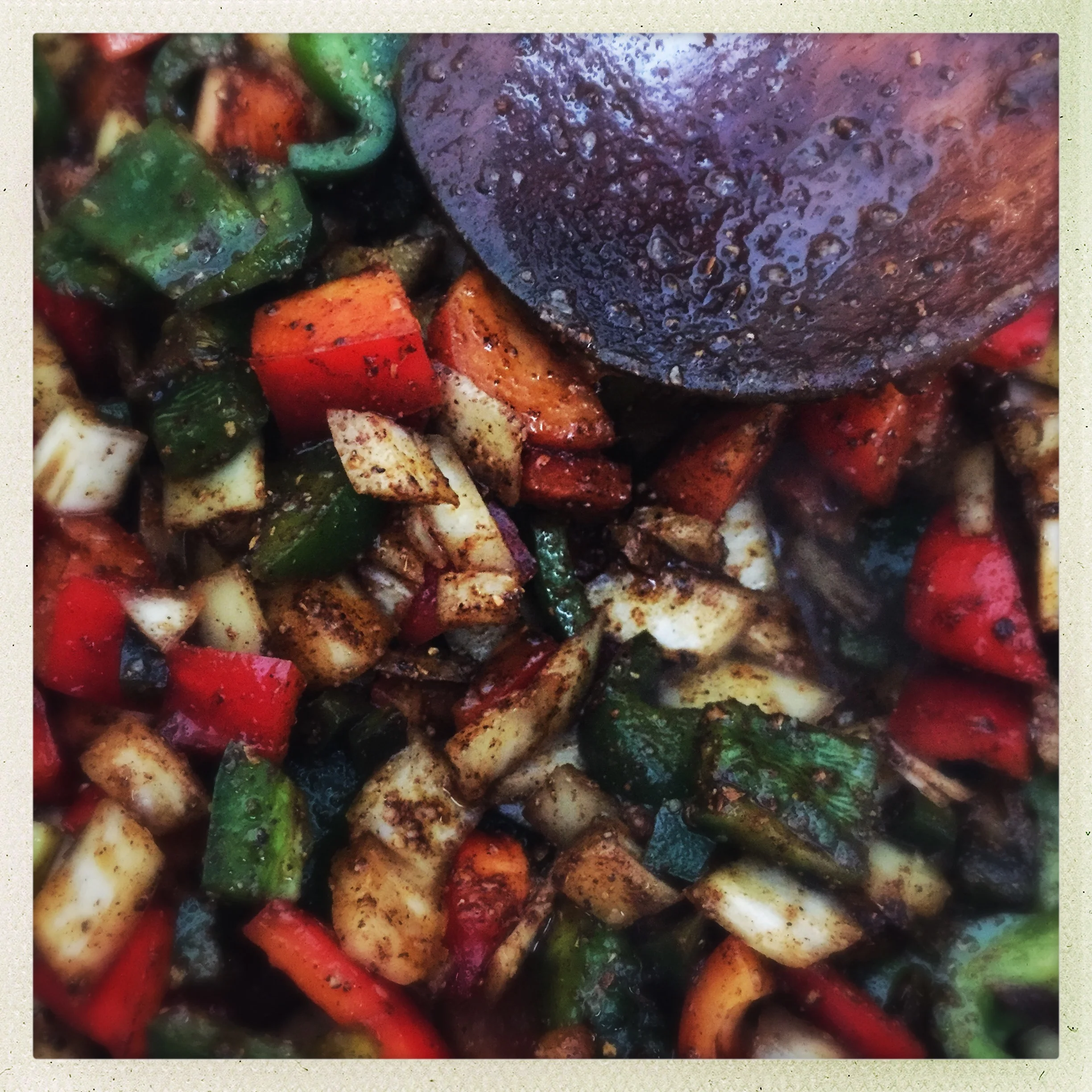 -Bring up the heat to medium high and add in your fresh vegetables (leave garlic aside).
