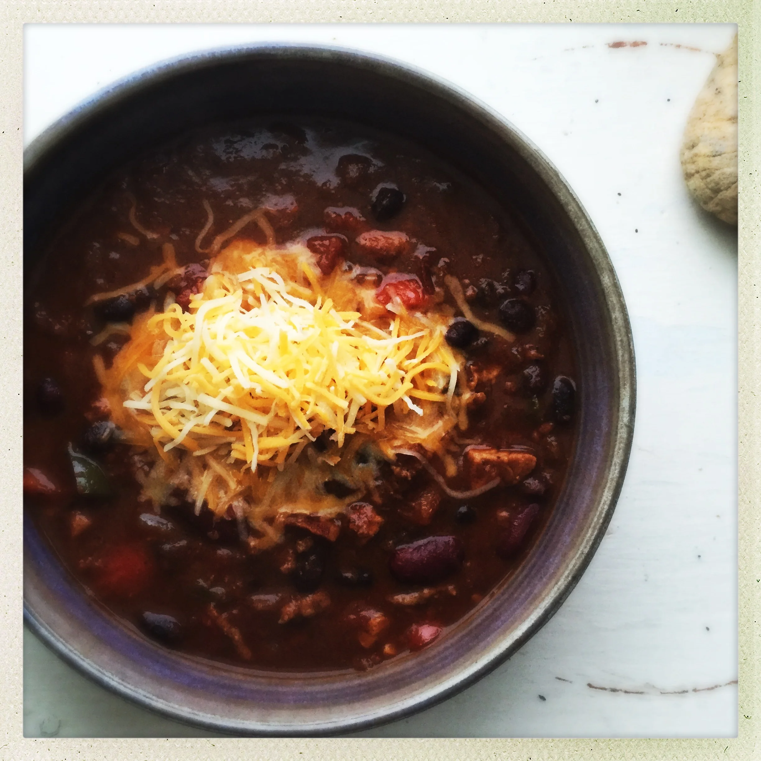 -Once your chili has come to a boil, reduce to a simmer, cover with a lid, and stir every now and then for 45-60 minutes. (If you have all day you can leave it on the lowest heat and slowly cook it all afternoon).