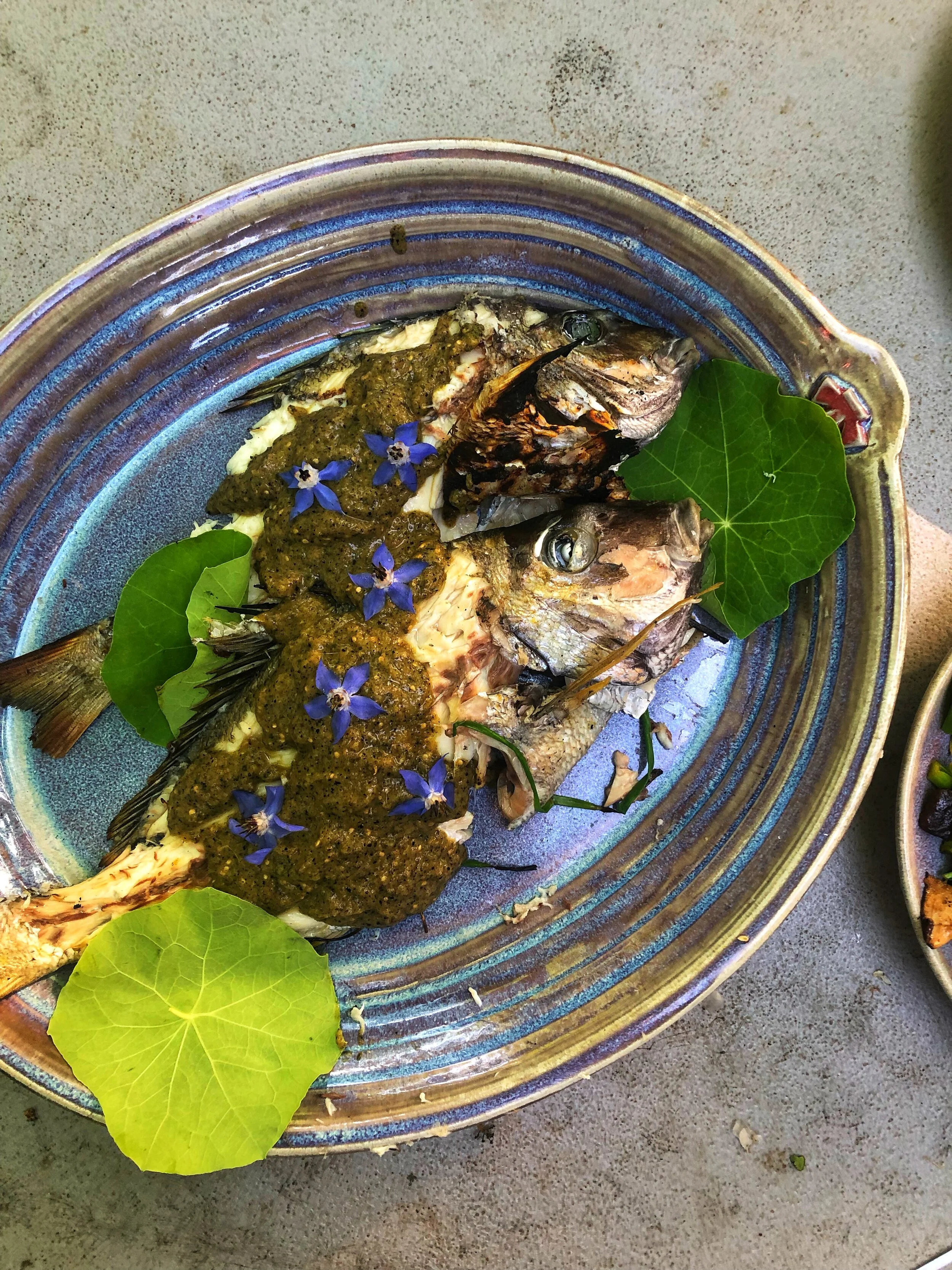 Black Sea Bass is a great fish. It is both easy to catch and easy to cook. Here I share a sea bass recipe with parsley sauce that can be applied to fresh or frozen sea bass, or a similar fish you could buy today.